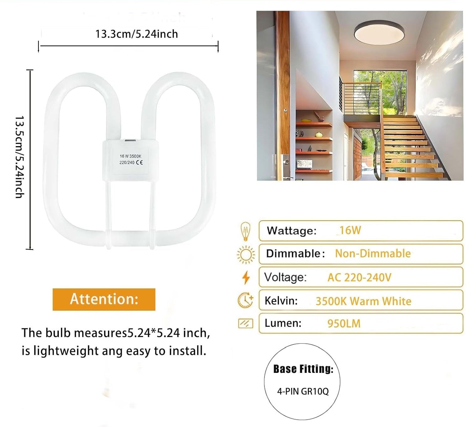 16W GR10Q Compact Fluorescent Lamp, 4 Pin Light Bulb Warm White 3500K, 950LM Energy-Saving Ceiling Light, Non-Dimmable AC 230V, 1 Pack