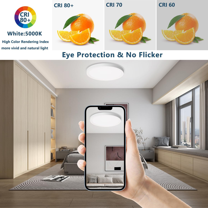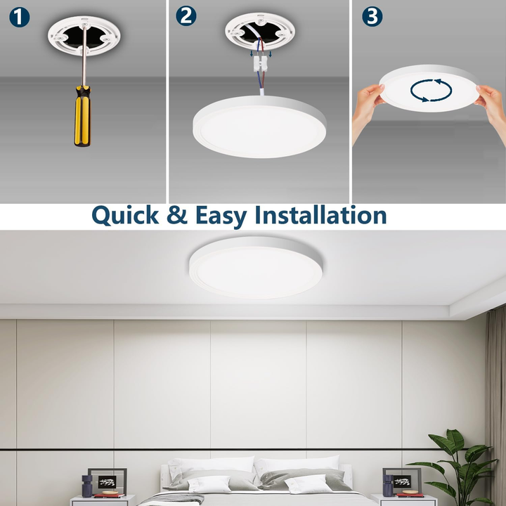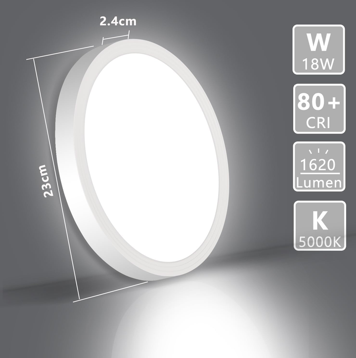 Upgrade your home lighting with this 18W LED Bathroom Ceiling Light, designed to deliver bright, clear, and consistent illumination for any room. With 1620 lumens of powerful output and a crisp 5000K daylight white color temperature, this fixture provides excellent visibility for bathrooms, kitchens, hallways, bedrooms, utility rooms, and more. Its 9-inch compact design fits perfectly in modern and traditional interiors, offering a clean and minimalist appearance.