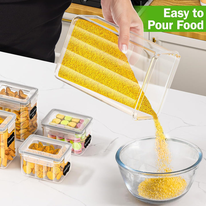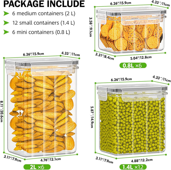 Keep your kitchen organized and ingredients fresh with this 24-Pack Food Storage Containers set. With a total capacity of 33.6 liters, these airtight containers are perfect for storing cereal, flour, sugar, baking supplies, snacks, grains, and more.