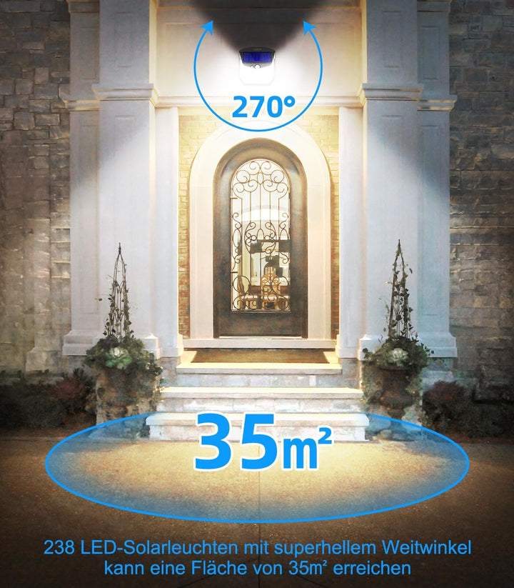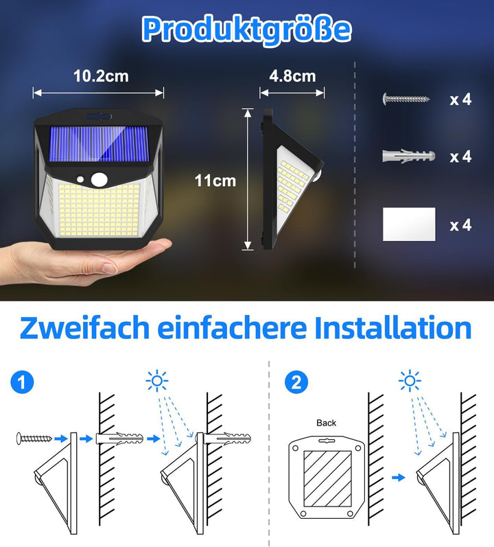 Brighten up your outdoors with the Solar Security Lights Outdoor Garden (4-Pack) — equipped with 248 ultra-bright LEDs, 270° wide-angle illumination, and an advanced motion sensor system for all-night safety and convenience.