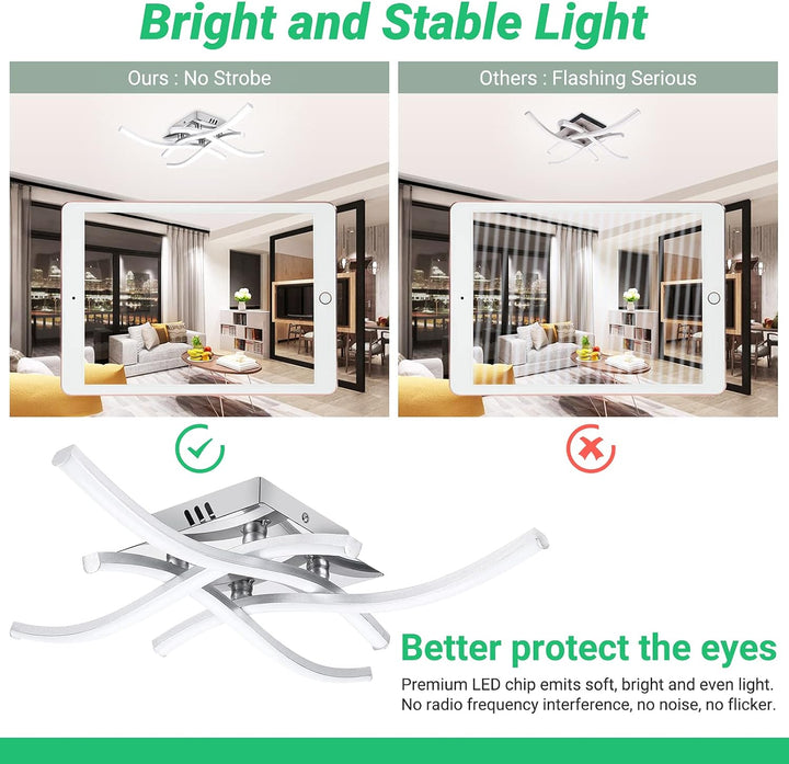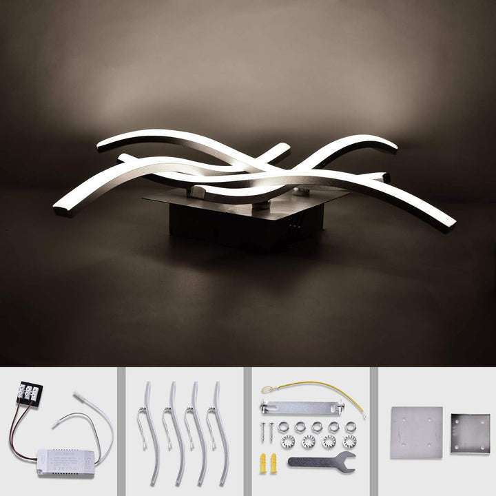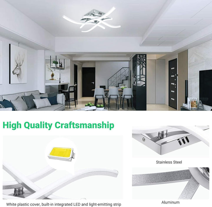 Bring a touch of modern elegance to your home with the 24W Curved LED Ceiling Light, featuring a sleek silver finish and a sculptural design with 4 built-in LED panels. Crafted from high-quality aluminum alloy, this ceiling fixture offers both style and durability — perfect for enhancing the ambience of your living room, bedroom, dining area, or hallway.