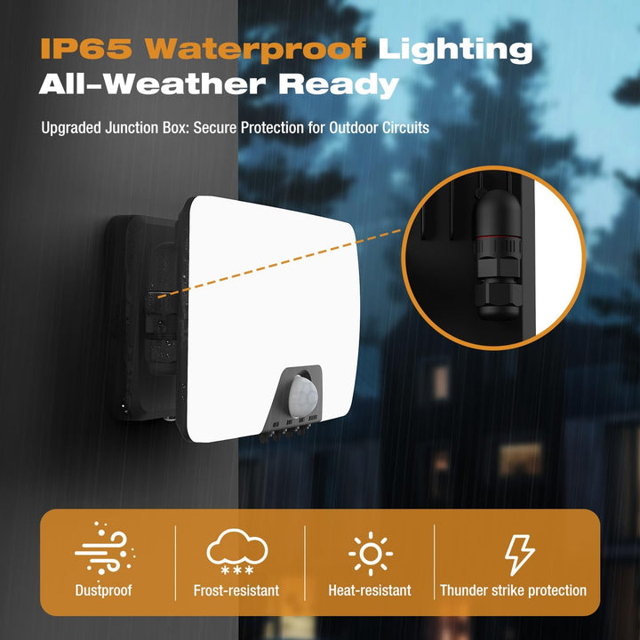 24W Security Light Outdoor with PIR Sensor, Adjustable 3000K–6500K Floodlight, IP65 Waterproof
