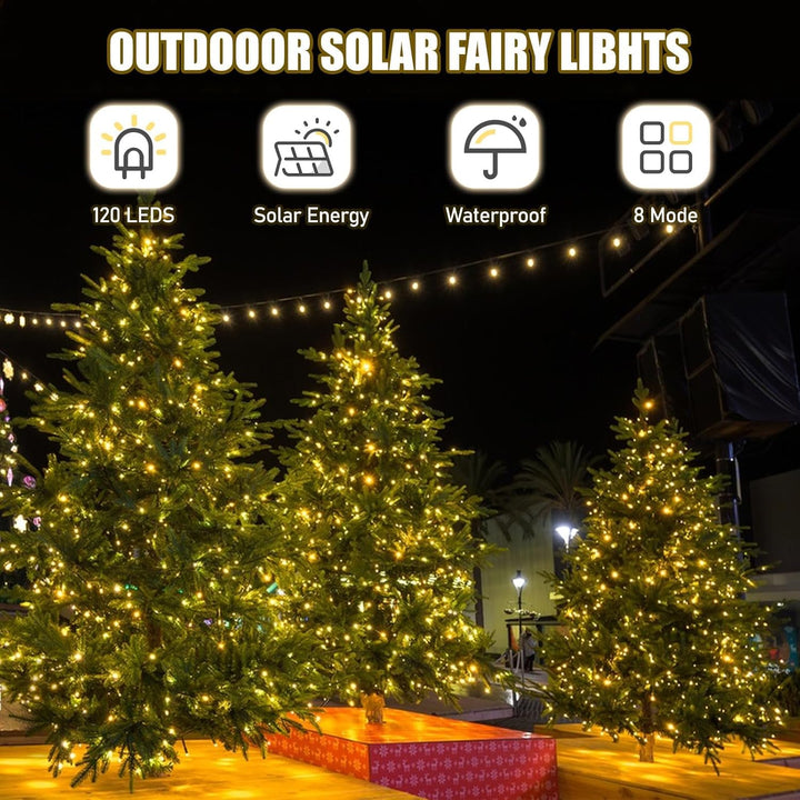 Transform your outdoor space into a magical wonderland with the 2 Pack Solar Fairy Lights Outdoor (240 LEDs, 80FT Total). Each set includes 120 bright micro LEDs on 12 meters (39ft) of flexible copper wire, perfect for wrapping around trees, fences, patios, and gazebos.