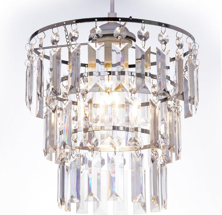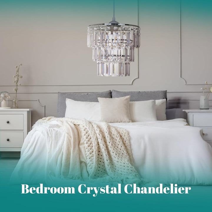 Elegant 3-Tier Crystal Design: Chrome finish paired with sparkling acrylic crystals creates a luxury chandelier effect.