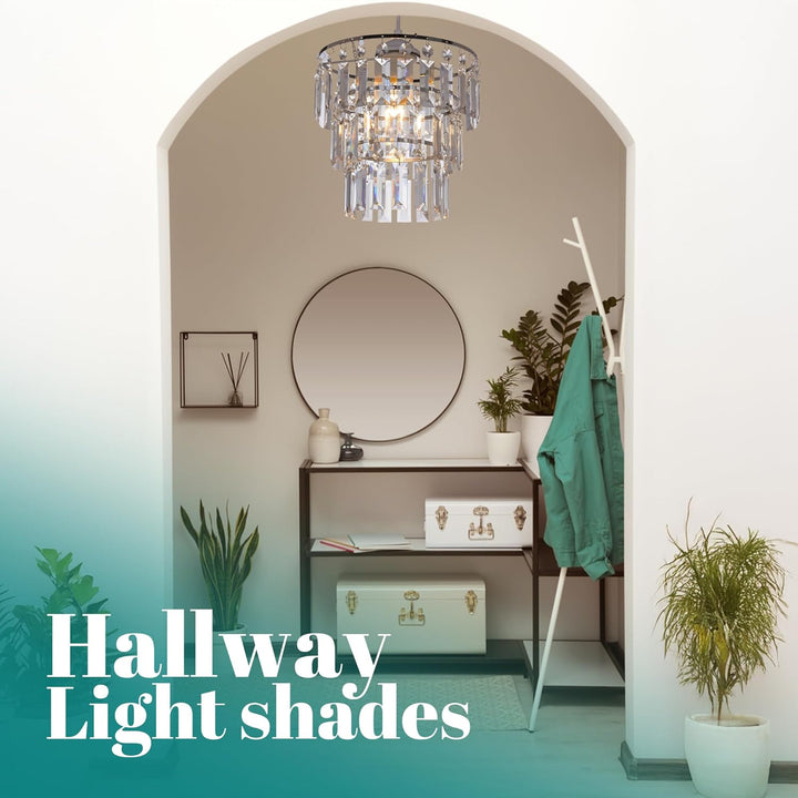 3-Tier Chrome Crystal Chandelier Lampshade for Ceiling & Table