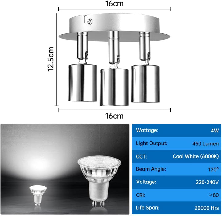 Model: GU10 3-Way Ceiling Spotlight