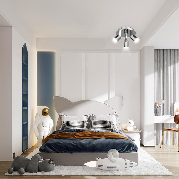 Each of the three adjustable spotlight heads can rotate 330° horizontally and 90° vertically, allowing you to direct light precisely where it’s needed — perfect for highlighting artwork, brightening workspaces, or creating ambient mood lighting.