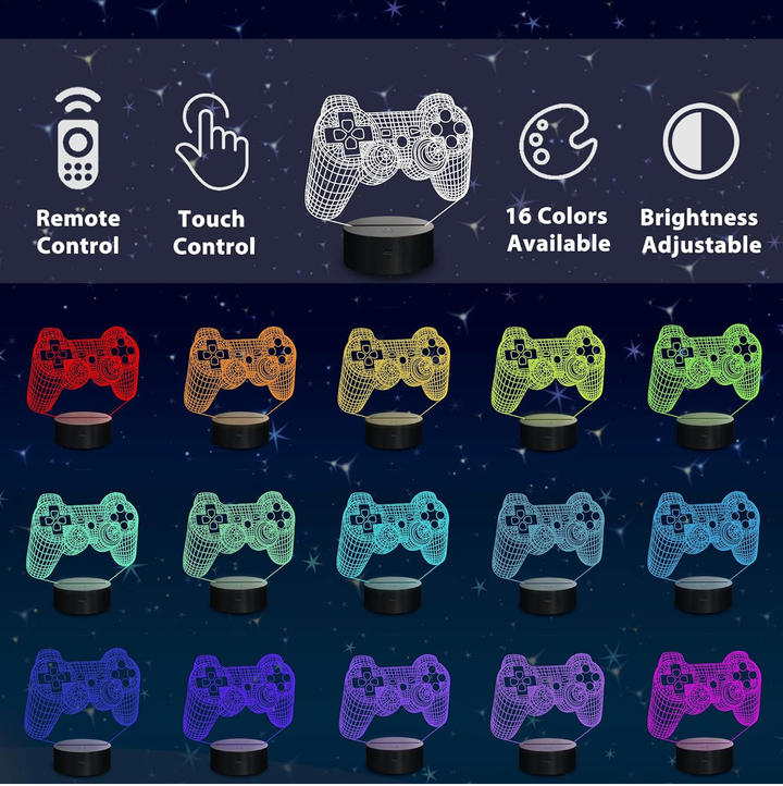 3D Gamepad Illusion Lamp Remote Control, 16-Color Changing Night Light
