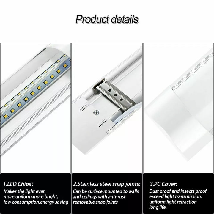 Wide Application – Ideal for garages, basements, workshops, warehouses, kitchens, offices, supermarkets, storage rooms, and more, offering uniform and shadow-free lighting.