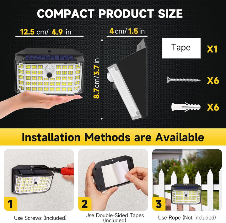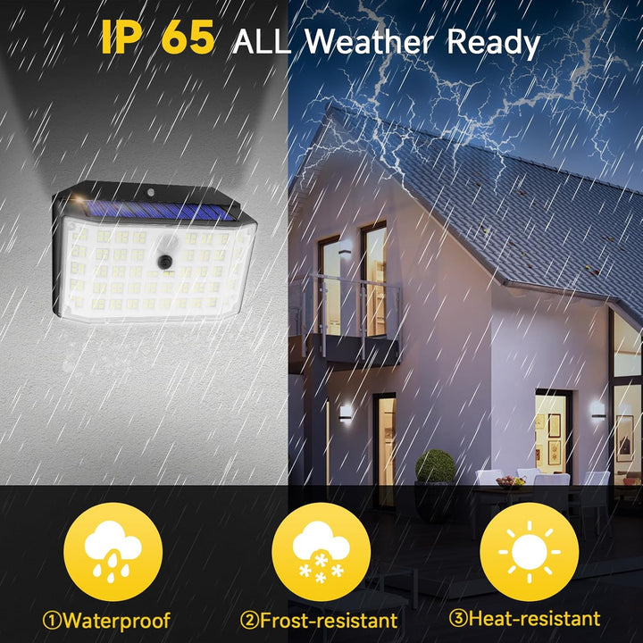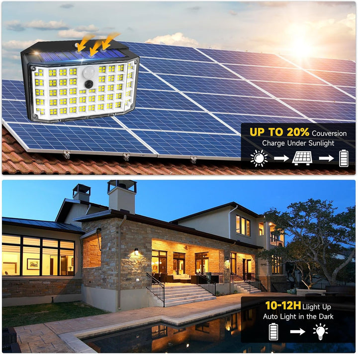 Illuminate your outdoor spaces with the 4 Pack Solar Lights Outdoor Garden Security Set, featuring super bright 2000 lumens, 270° wide-angle illumination, and advanced motion sensing for maximum safety and energy efficiency.