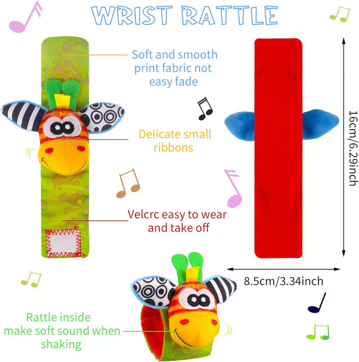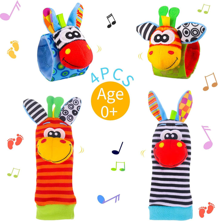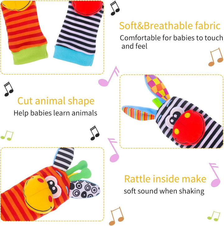4 Pcs Baby Wrist & Foot Rattles – Sensory Socks Toy for Newborns 0–9 Months