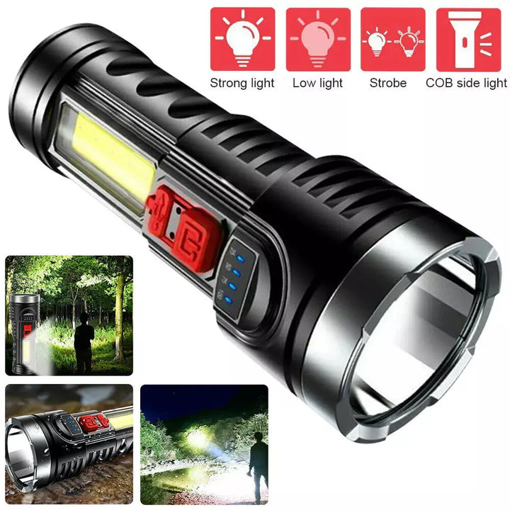 Experience unmatched brightness and reliability with this 400,000-lumen LED super bright torch, designed for camping, hiking, emergencies, and outdoor adventures. This high-powered flashlight features a durable, rechargeable design, ensuring long-lasting performance and versatile lighting modes to suit any situation. Whether you're exploring the outdoors, working in low-light conditions, or preparing for emergencies, this flashlight is built to deliver powerful illumination when you need it most.
