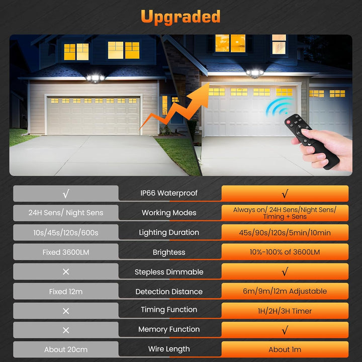 42W Motion Sensor Security Light 3600LM 6500K with Remote Control, IP66