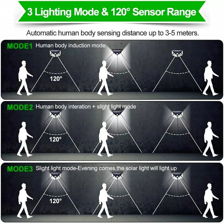 100 LED Ultra-Bright Solar Motion Lights Outdoor, The lighting angle is up to 270°, which can illuminate space about 30㎡ at night. Providing convenience and safety for your life. Also working great in winter.
