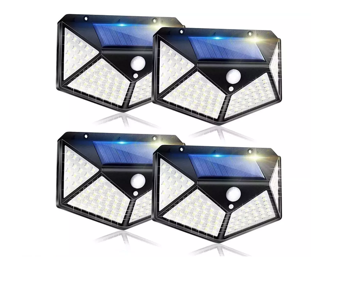 4X Solar Power PIR Motion Sensor Wall Lights – 100LED Outdoor Garden Security Lamp