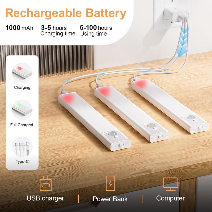 5-Pack Rechargeable LED Under Cabinet Lights, Motion Sensor, Dimmable, Type-C