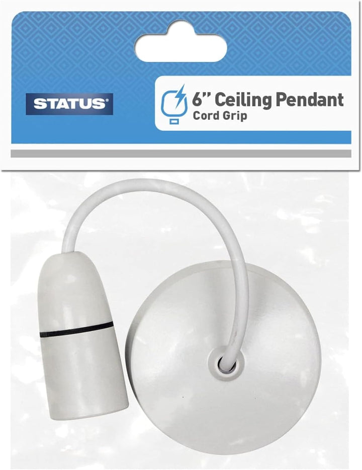 1 × 6-Inch White Ceiling Pendant Light Fitting (Pre-Wired)