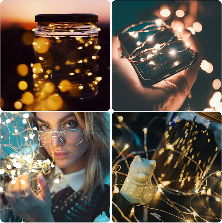 The soft, twinkling effect of these fairy lights adds a touch of charm to any occasion. The copper wire design ensures that the lights can be easily shaped and wrapped around furniture, trees, or walls for versatile and creative displays. Powered by 2 AA batteries (not included), these lights are easy to set up without the need for power outlets, making them perfect for places where traditional lights can't reach.