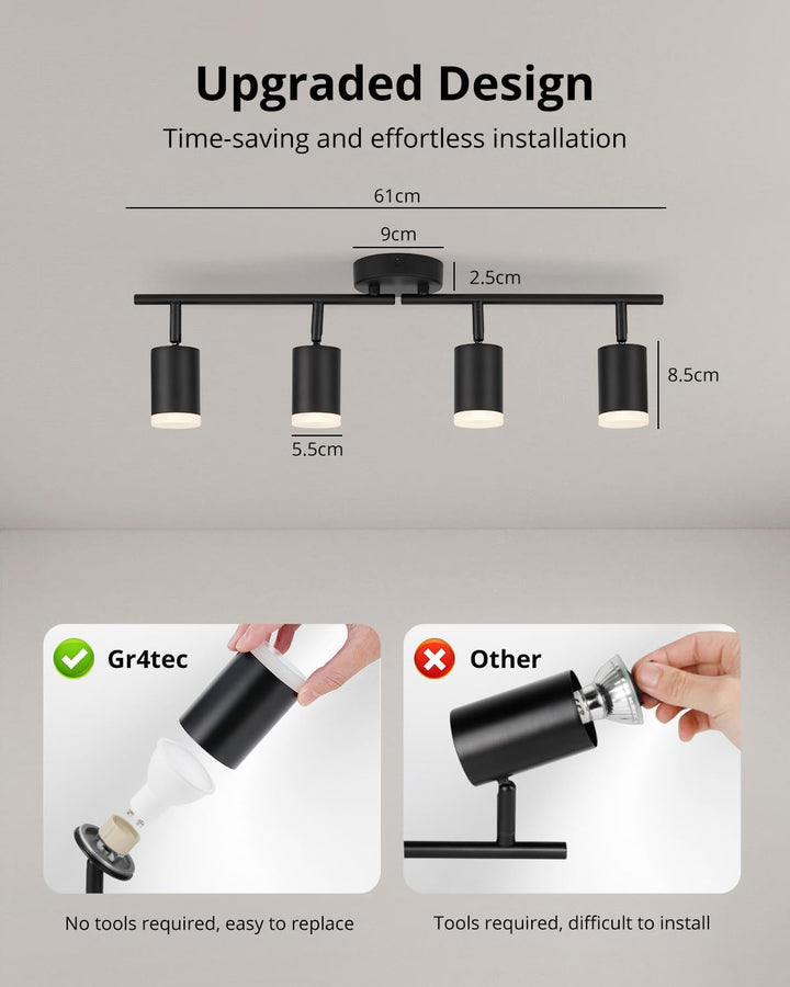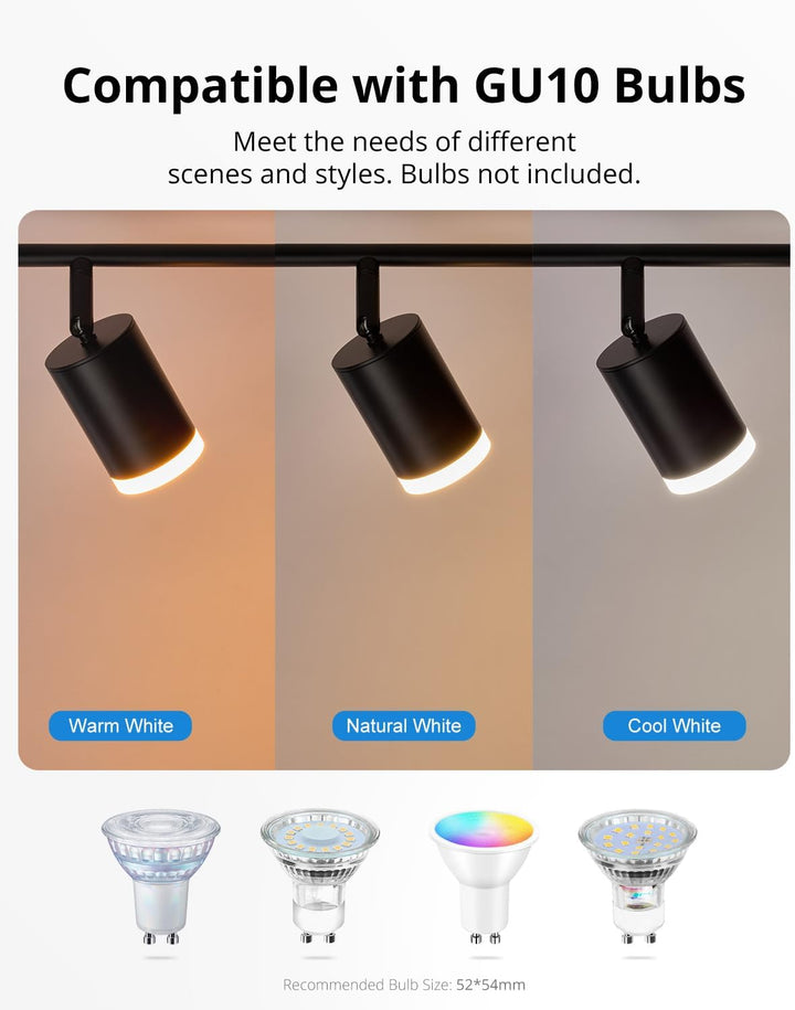 Flexible Lighting: Compatible with dimmable, smart, or standard GU10 bulbs.