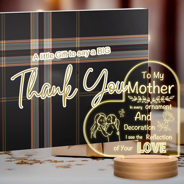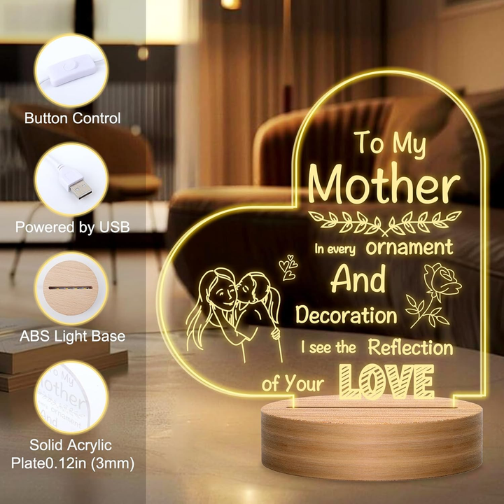 Acrylic Heart Mom Night Light Gift for Mother’s Day, Birthday Home Decor