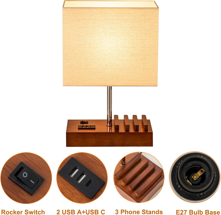 This isn't just a lamp—it's a complete power and organization hub for your space. With a sleek solid wood base, it blends seamlessly into any home or office.