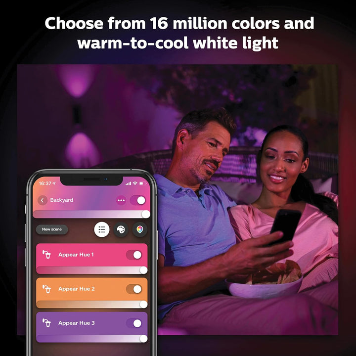 Featuring 16 million colours and adjustable white tones (cool to warm), the Appear Smart Light lets you personalize your outdoor atmosphere for any mood or occasion. Compatible with Amazon Alexa, Google Assistant, and Apple HomeKit, it enables convenient voice or app-based control — turn lights on or off, dim brightness, or change colors effortlessly.