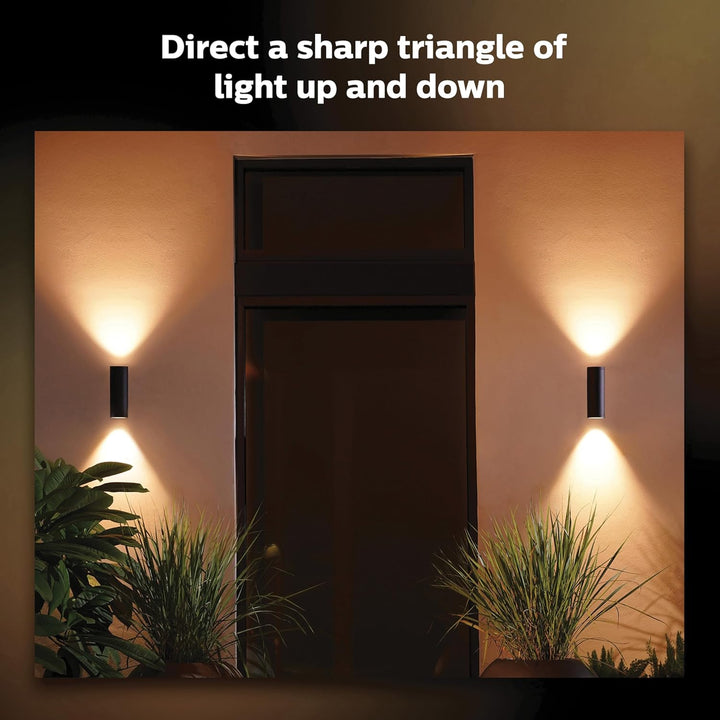 With IP-certified protection against moisture and dust, this LED wall light is built for outdoor use all year round. When paired with the Philips Hue Bridge (sold separately), it supports full automation, scheduling, and remote control — giving your home a smart, lived-in appearance even when you’re away.