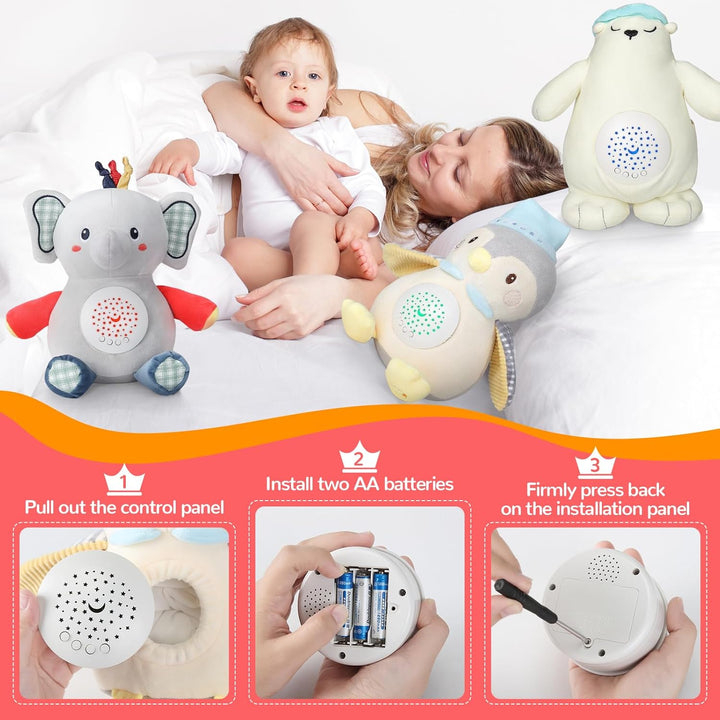 Create a calm and comforting sleep environment for your little one with this Baby Sleep Aid Soother, designed to help newborns, infants, and toddlers relax and fall asleep faster. Featuring a gentle nursery décor night light projector, it casts soothing starry patterns across the room, providing a sense of security and visual comfort during bedtime.