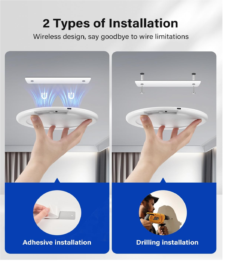 Easy Wireless Installation: Mounts quickly with adhesive or screws—no electrician needed.