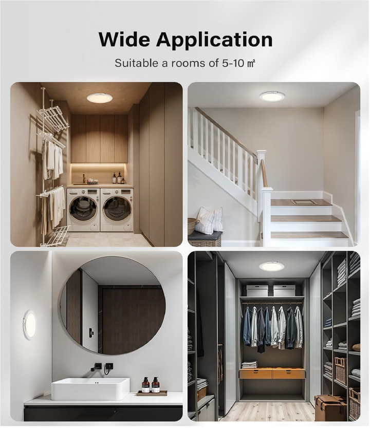Wide Applications: Ideal for toilets, hallways, garages, closets, stairways, and more.