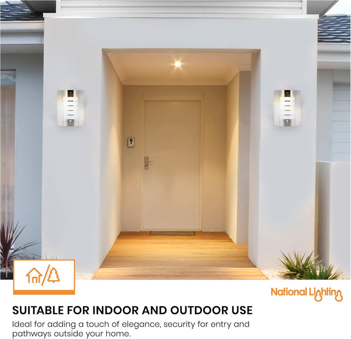 Bianco PIR Outdoor Wall Light – Stainless Steel Mains-Powered Security Light with Motion Sensor, IP44 Rated, E27 LED Compatible
