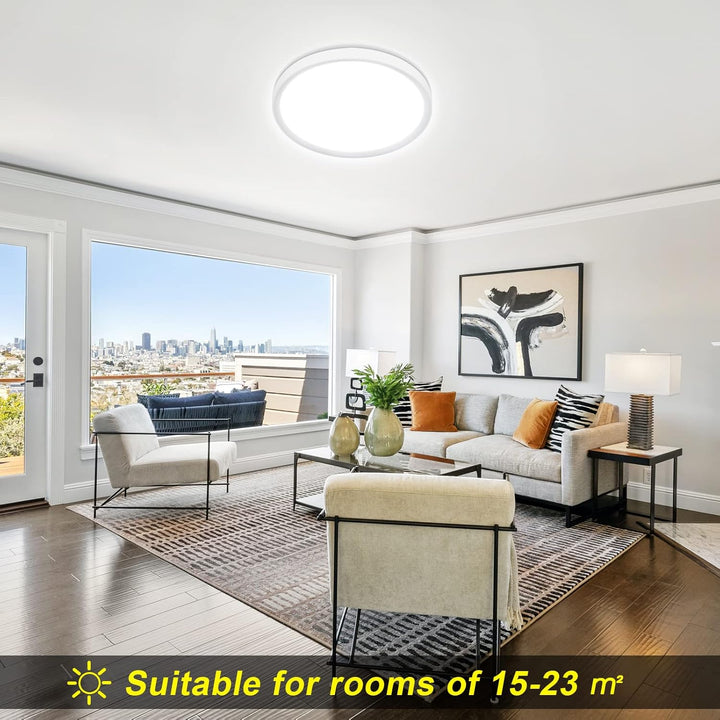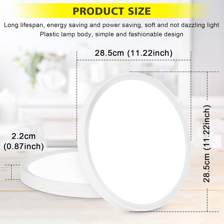 Illuminate your home with this 24W LED Ceiling Light (Ø28.5cm, 5000K, 2200LM) — a sleek, modern lighting solution that delivers powerful brightness with minimal energy consumption. Designed for versatility and longevity, this LED flush mount ceiling lamp provides the equivalent output of a 150W traditional bulb, consuming up to 85% less energy and lasting up to 20,000 hours.
