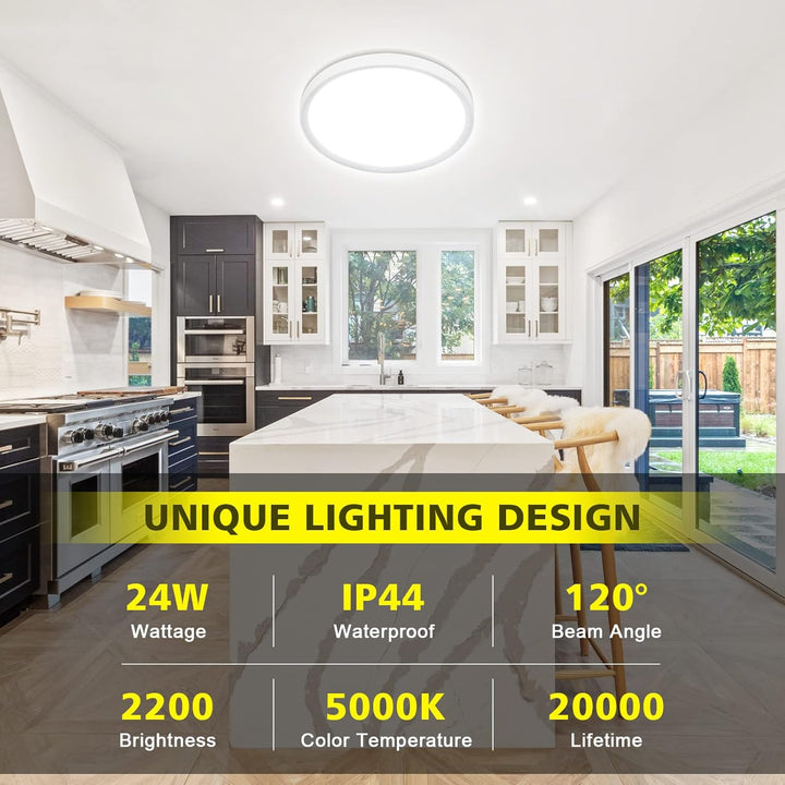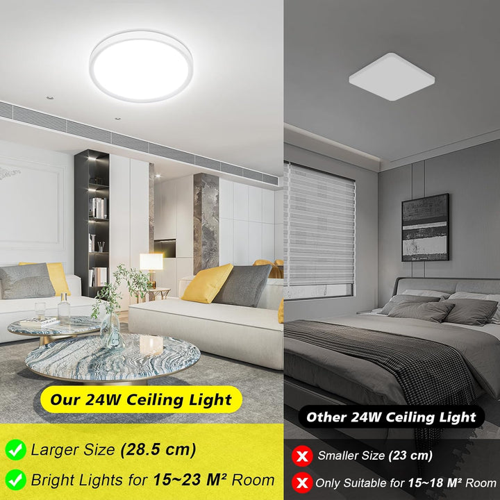 Bright 24W LED Ceiling Light, 5000K Daylight White Lamp