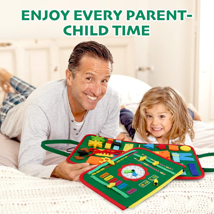 Crafted from durable, non-toxic materials, the board is safe for children while providing engaging tactile experiences. Its compact and portable design makes it perfect for home use, travel, or daycare. Suitable for toddlers around 3 years old, this busy board promotes independent play, concentration, and early learning skills. It also makes a thoughtful gift for birthdays, holidays, or any special occasion.