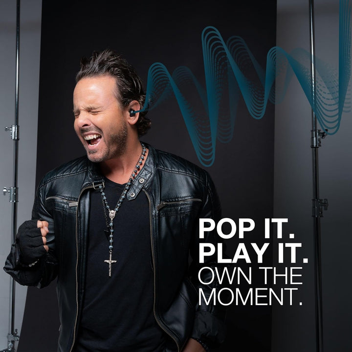 The compact charging case, smaller than a credit card, delivers up to 24+ hours of total playtime (7+ hours per charge, or 21+ hours with ANC). Designed for comfort and portability, the Go Pop ANC earbuds are lightweight and IP55 sweat-resistant, making them perfect for travel, gym, and everyday use.