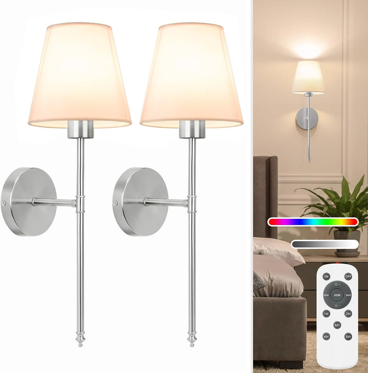 Bring timeless elegance and modern functionality together with this 19.9-inch Battery-Operated Wall Light. Inspired by classic candelabra designs, this lamp features a luxurious nickel-finished frame and a soft white fabric shade, exuding sophistication and charm in any interior.