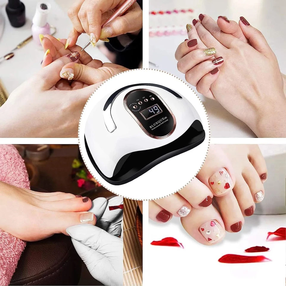 - Smart LCD Display & Auto Sensor – The built-in LCD screen shows the remaining curing time, while the smart sensor activates the lamp when you insert your hands.