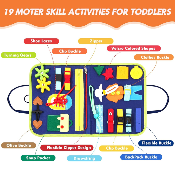 Activities Included: Buckles, zippers, laces, buttons, switches, sensory textures