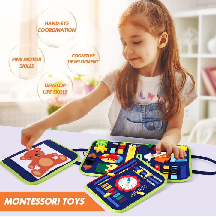 Hooku Montessori Busy Board, Sensory Learning Travel Toy for Toddlers Age 3