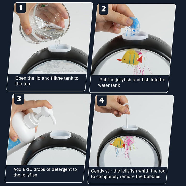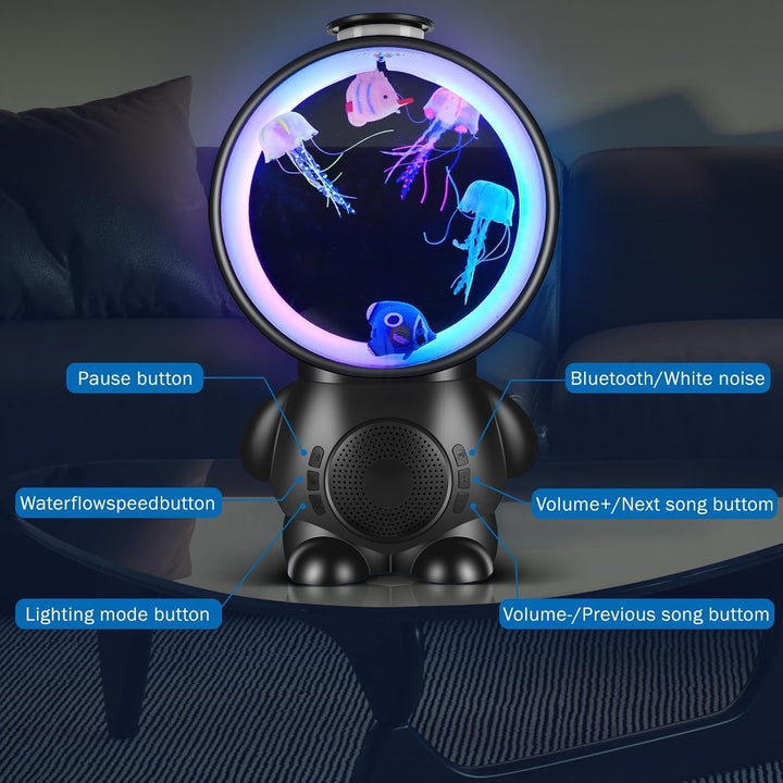 Jellyfish Mood Lamp with 10 Lights & 14 Soothing Sounds, Adjustable Flow