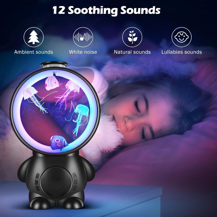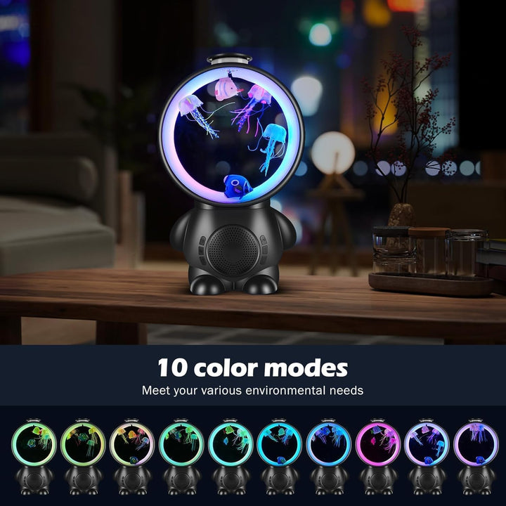 The Jellyfish Mood Lamp is a mesmerizing night light designed to create a calming and immersive environment for kids. Featuring a cute astronaut design, realistic floating jellyfish, and adjustable bubble water flow, this lamp adds a magical underwater effect to any room. With 10 lighting modes and 14 built-in soothing sounds, it provides both visual and auditory relaxation, perfect for bedtime, study, playtime, or sensory stimulation.