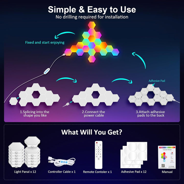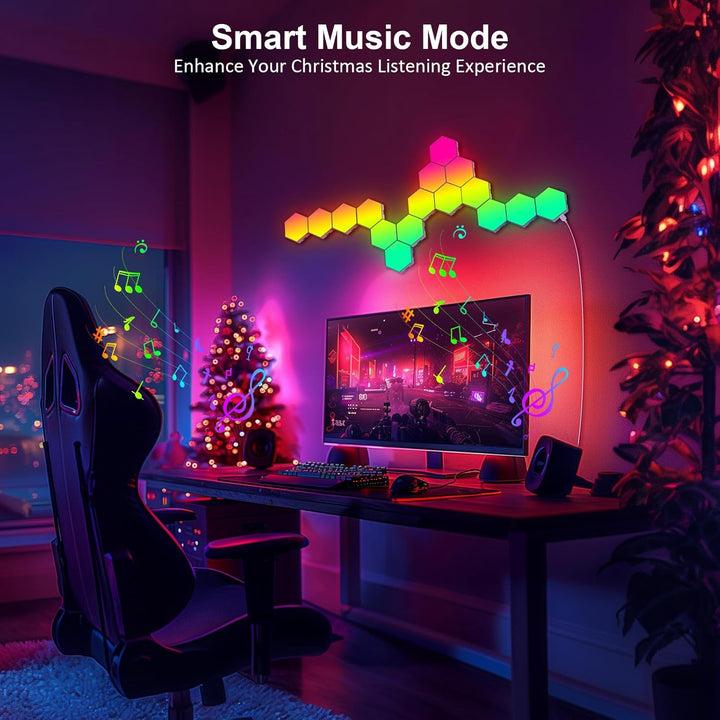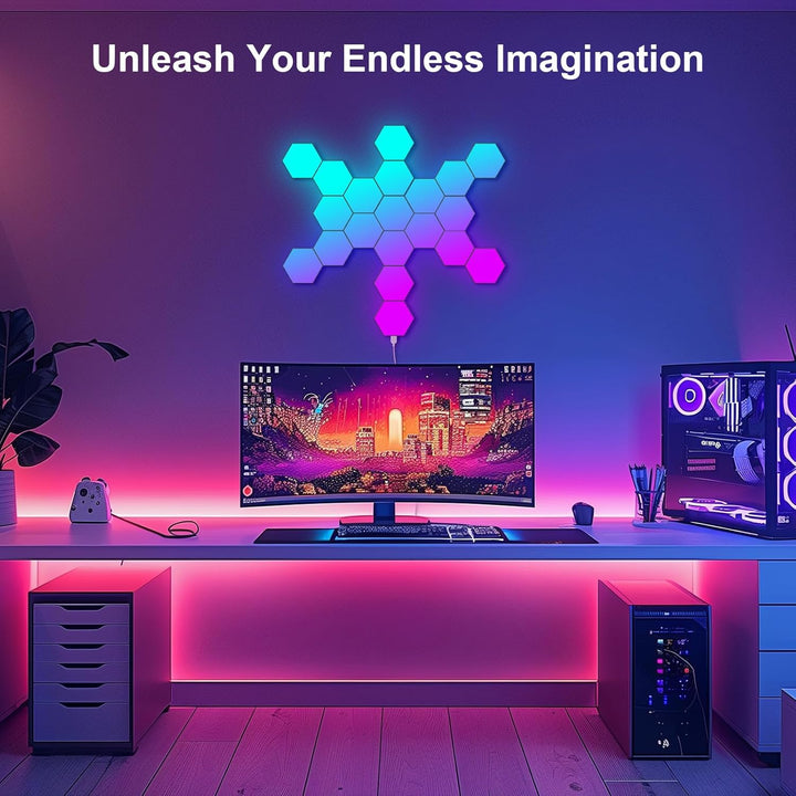 Transform any space into a stunning visual experience with the Kangtaixin Hexagon LED Light Panels — a modular, music-synced RGB wall lighting system perfect for gaming rooms, bedrooms, and creative setups.