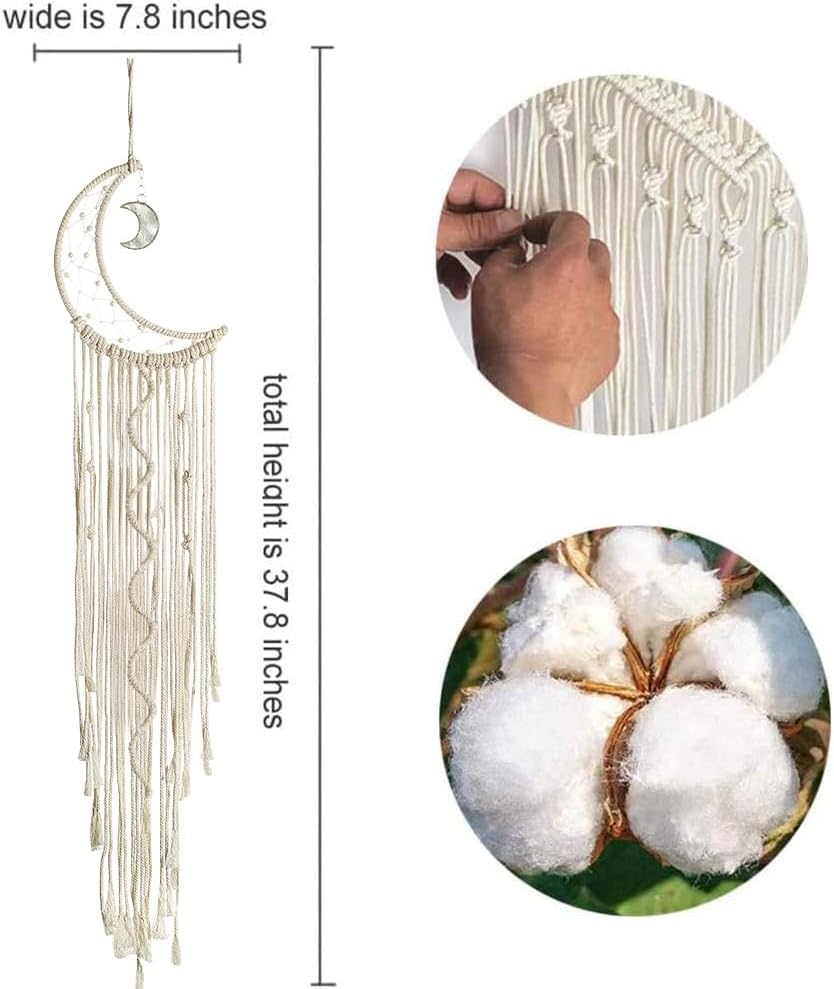 The Dream Catcher: One beautifully handmade macrame tapestry featuring a moon and pearl design (7.9" x 37.8").