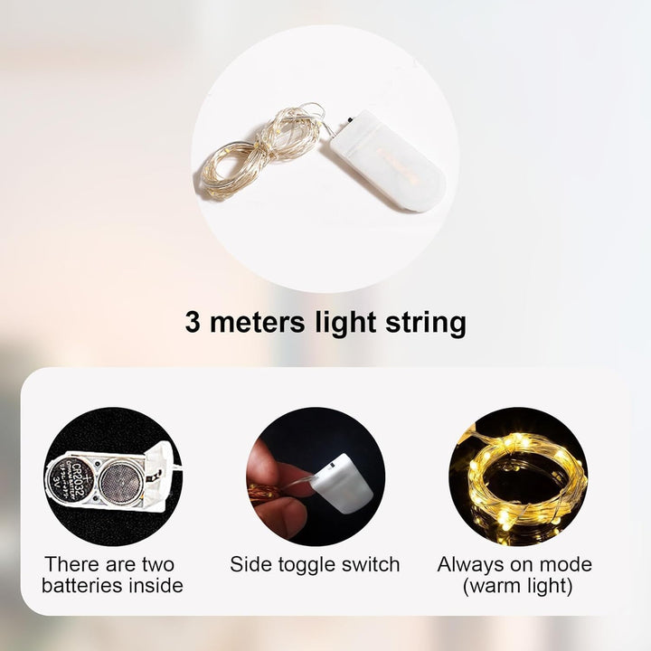 Magical LED Ambiance: Includes a battery-operated string of LED lights (batteries not included) that wrap evenly around the design, creating a enchanting and dreamy glow for nighttime ambiance.