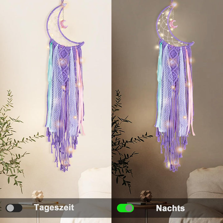 Koytoy Macrame Wall Hanging with LED Lights, Moon Dream Catcher Tapestry for Bohemian Home, Wedding, and Ramadan Decor - A Thoughtful Craft Gift