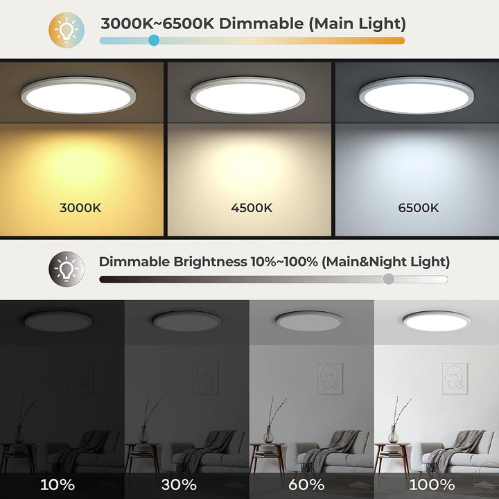 Transform your home lighting with the LED Ceiling Light Dimmable 36W, an elegant and energy-efficient solution designed for comfort, control, and versatility. This modern ceiling lamp features adjustable brightness (10–100%) and color temperatures from 3000K to 6500K, allowing you to tailor the ambiance for reading, relaxing, dining, or working.