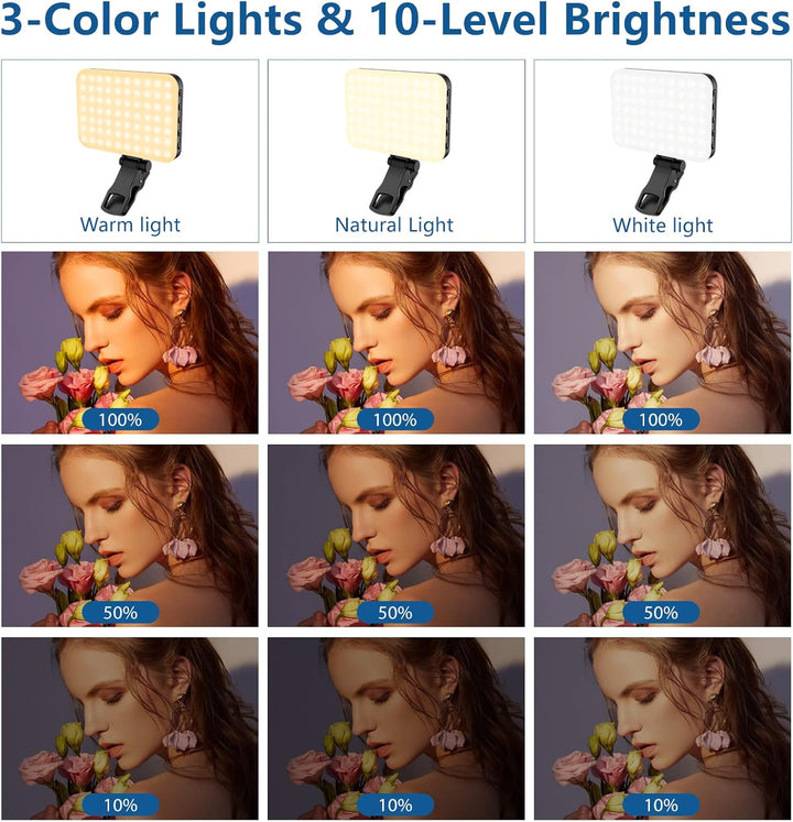 LED Portable Selfie Light with Clip & Tripod, Rechargeable, 3 Modes for Phones