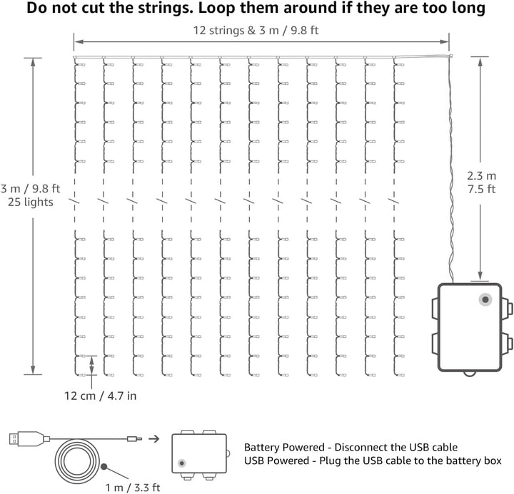 Lepro 3x3M 300 LED Curtain Fairy Lights | USB & Battery Powered Warm White Lights with Remote & Timer