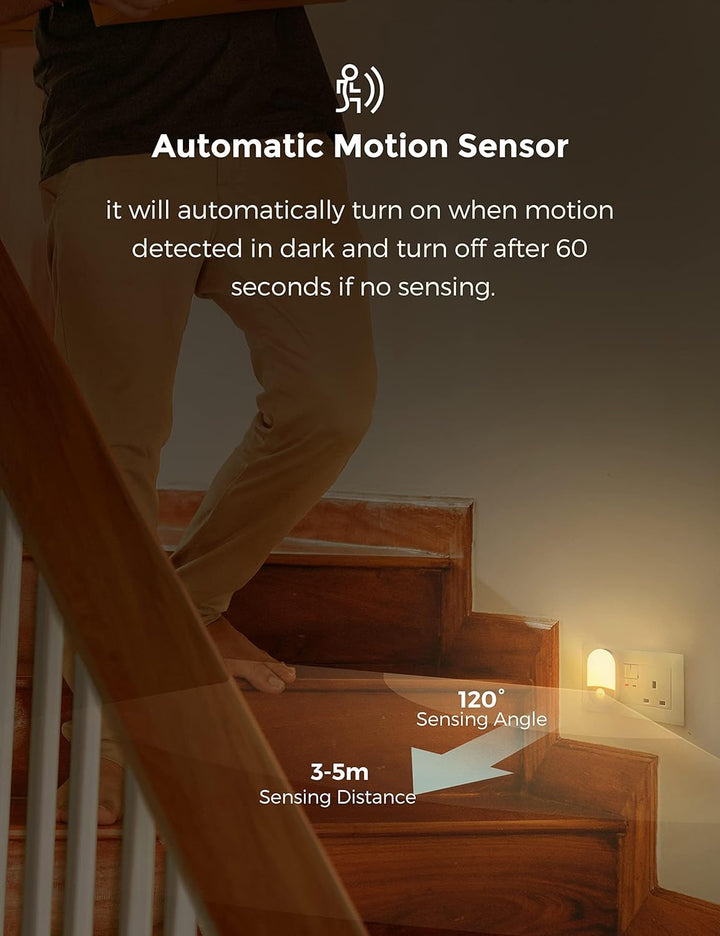 Adjustable Brightness: Two brightness settings (30lm or 60lm) let you customize the perfect glow for bedrooms, corridors, and stairways.