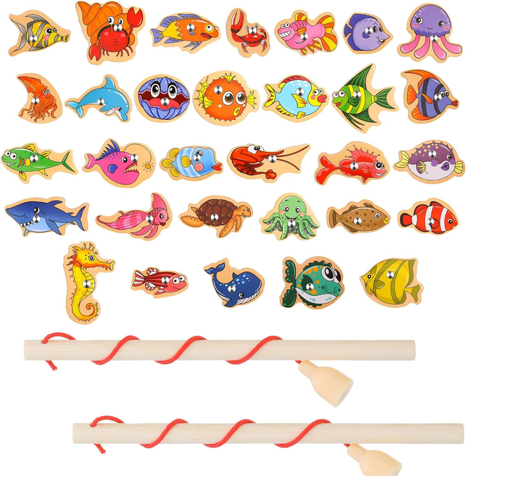 Total Pieces: 33 wooden fish + 2 magnetic fishing rods
